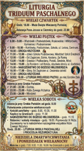 Liturgia Triduum Paschalnego WIELKI CZWARTEK Godz. 18.00 – Msza Święta Wieczerzy Pańskiej Adoracja Pana Jezusa w Ciemnicy do godz. 22.00