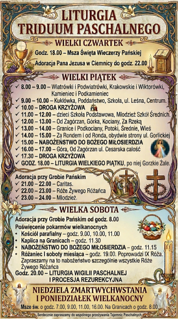 - 15.00 – NABOŻEŃSTWO DO BOŻEGO MIŁOSIERDZIA