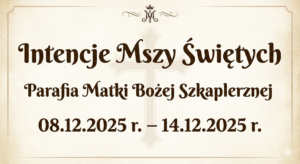 Intencje Mszy Świętych Parafia Matki Bożej Szkaplerznej 08.12.2025 r. – 14.12.2025 r.